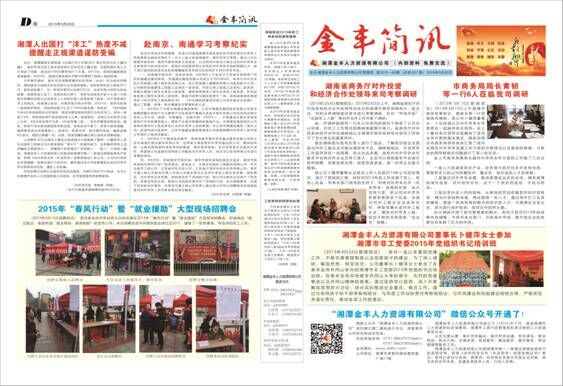公司自辦報(bào)刊《金豐簡(jiǎn)訊》,展示企業(yè)文化,宣傳派遣員工正能量。