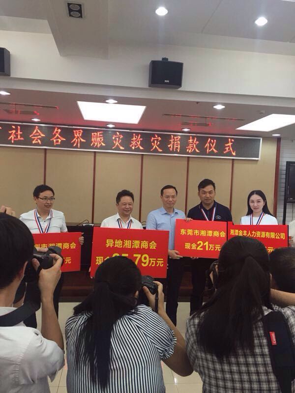 7月11日,由中共湘潭市委、市人民政府主辦的湘潭市社會各界賑災救災捐款儀式,在市政府五樓會議室舉行。市領導曹炯芳、談文勝、陳忠紅、楊真平、程蓓、顏集成、傅軍出席捐款儀式。談文勝市長代表市人民政府接受捐款,曹炯芳書記在捐款儀式上發(fā)表了講話。