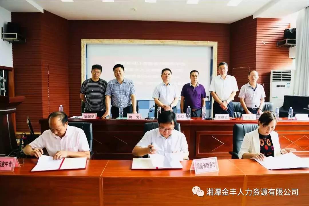 2018年9月12日,湖南省對外勞務合作服務平臺、湘潭金豐人力資源有限公司、隆回縣職中合作簽約、揭牌儀式隆重舉行。