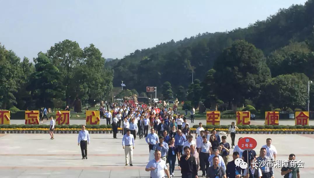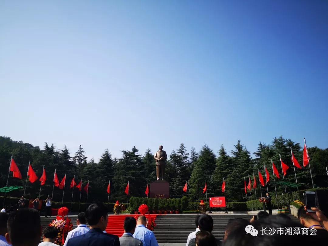 9月29日,從海內(nèi)外趕回湘潭參加潭商大會的300多名潭商客商前往韶山,向毛澤東同志銅像敬獻(xiàn)花籃,并在巍峨韶峰下宣讀《潭商宣言》。