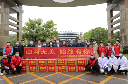 團第四組代表到湖南工程學(xué)院,向該校捐贈了5萬只一次性醫(yī)用口罩,為抗擊疫情貢獻人民代表的力量。