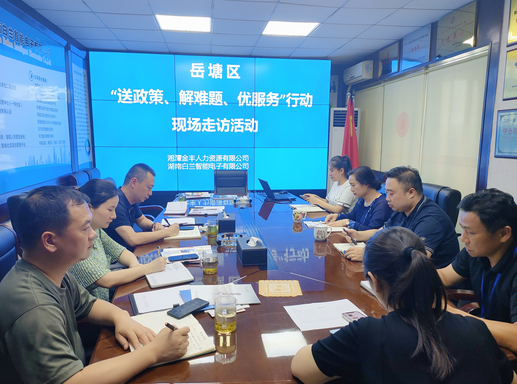 為進(jìn)一步助力企業(yè)紓困解難,推動(dòng)轄區(qū)企業(yè)高質(zhì)量發(fā)展。6月29日下午3點(diǎn),岳塘區(qū)副區(qū)長(zhǎng)宋洋帶領(lǐng)岳塘區(qū)政府辦、區(qū)人社局、建設(shè)路街道相關(guān)負(fù)責(zé)人一行來(lái)我司開(kāi)展百名干部聯(lián)百企“送政策、解難題、優(yōu)服務(wù)”專項(xiàng)行動(dòng)。宋洋副區(qū)長(zhǎng)一行與企業(yè)負(fù)責(zé)人進(jìn)行了深入的交流,詳細(xì)了解企業(yè)運(yùn)行的實(shí)際情況,認(rèn)真傾聽(tīng)企業(yè)訴求和困難,現(xiàn)場(chǎng)解決發(fā)展難題,并為企業(yè)送上了惠企政策口袋書(shū)。