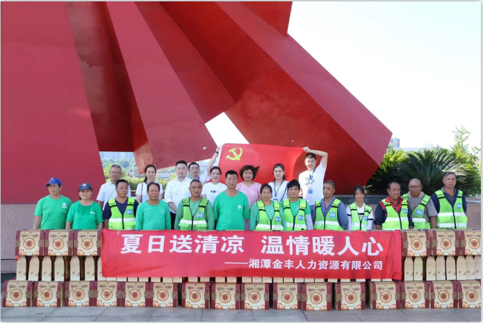 近期持續(xù)高溫,酷暑炎炎,我市廣大園林維護作業(yè)工人仍堅守一線,用辛勤的勞動守護美麗的湘潭。為致敬和關愛園林一線作業(yè)人員,8月19日,湘潭金豐人力資源有限公司董事長卜健萍女士帶領公司黨、工、團負責人來到沿江風光帶作業(yè)現(xiàn)場,開展夏日送清涼慰問活動。本次慰問分菊花塘公園、和平公園、河東風光帶、河西風光帶四個點進行。