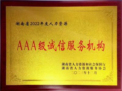熱烈祝賀我司被評為湖南省2022年度AAA級誠信人力資源服務(wù)機(jī)構(gòu)